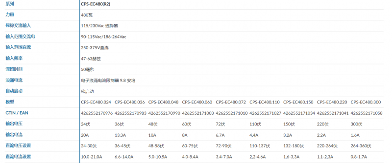CAMTEC 导轨电源CPS-EC480 480W系列